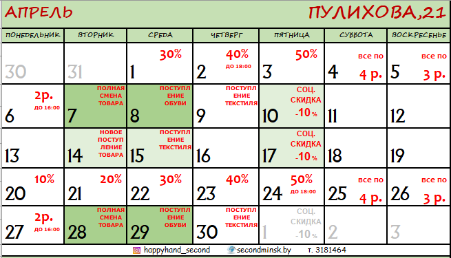 Поступления одежды проходят по вторникам , обуви - по средам (кроме недели скидок)